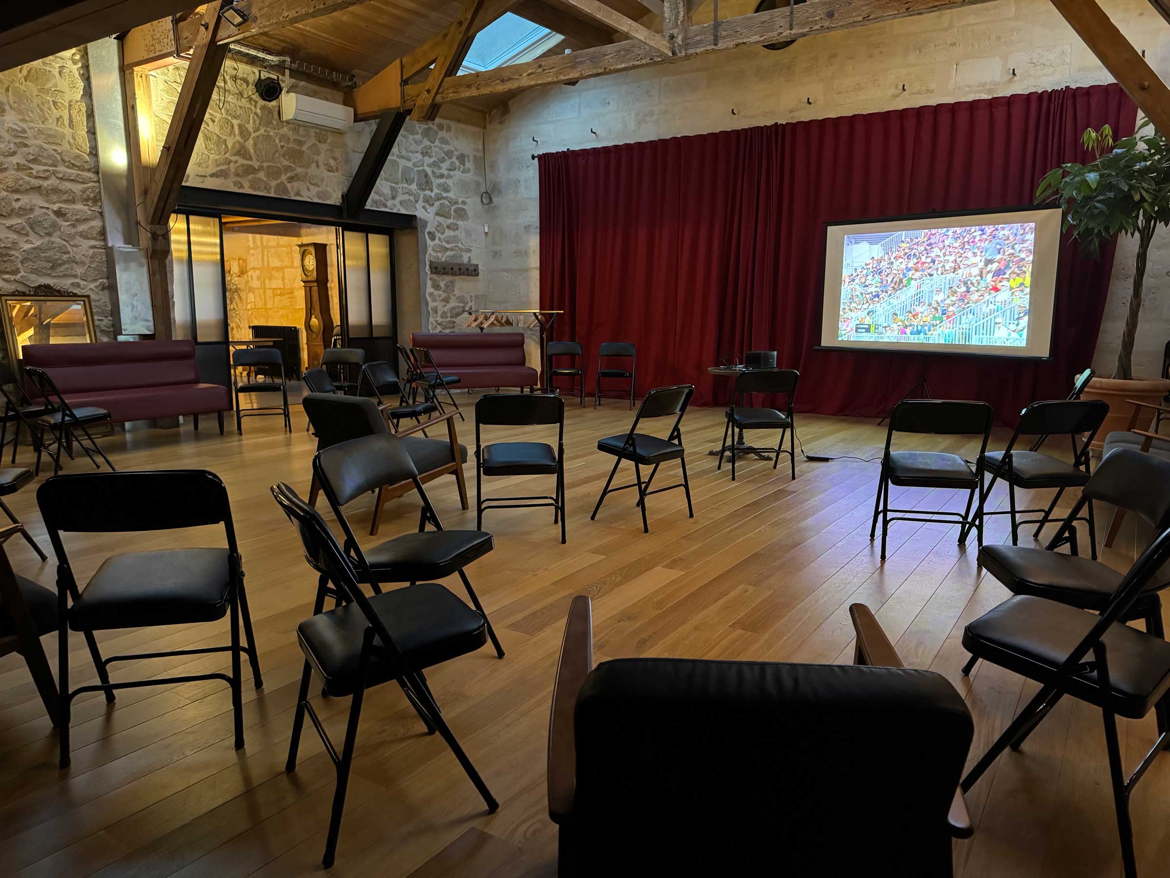 Une salle magnifique, chaleureuse et hyper fonctionnelle. Nous l'avons utilisée dans le cadre de l'un de nos séminaires de groupe, nous étions une grosse vingtaine et la salle a parfaitement rempli son office pendant toute la durée de la présentation. Son esthétisme léchée (pierre bordelaise, grand velux etc.) rajoute au confort du mobilier. Notre nouveau QG pour nos futurs séminaires. Et merci à Hélène pour son super accueil !